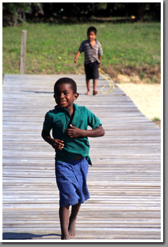 Boys having fun, Roatan - Costal Central America is a true ethnic and cultural patchwork. Garifuna, indigenous tribes like Miskito or Mayan, Mestizos of mixed local and Spanish blood, retired white North Americans looking for their paradise, and even Asian emigrants. |
