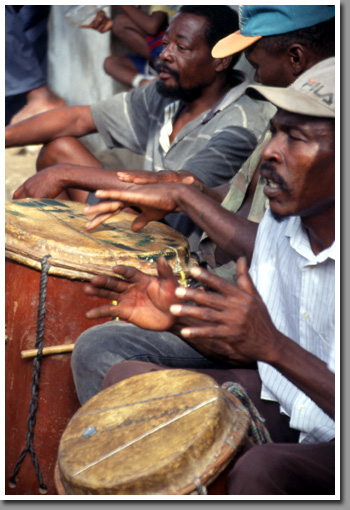 From door to door, playing and dancing. Garifuna are well known for their love of dance and music.